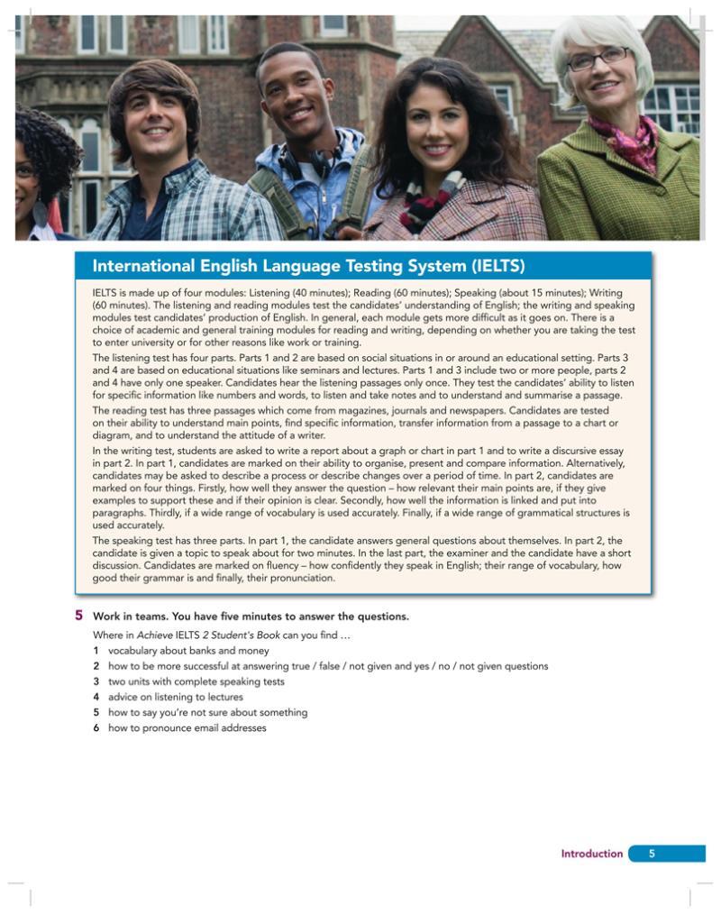 Achieve IELTS is written by experienced IELTS teachers and examiners and offers a unique approach to preparing students for the IELTS examination. It is a two-level, student-centred course that not only prepares students for the test but also for academic life after IELTS. This popular IELTS preparation course has been completely revised. The Student's and Teacher's Books have been redesigned. The Student's Books have new and updated listening and reading texts, and almost all of the photographs, charts and graphs have been replaced.