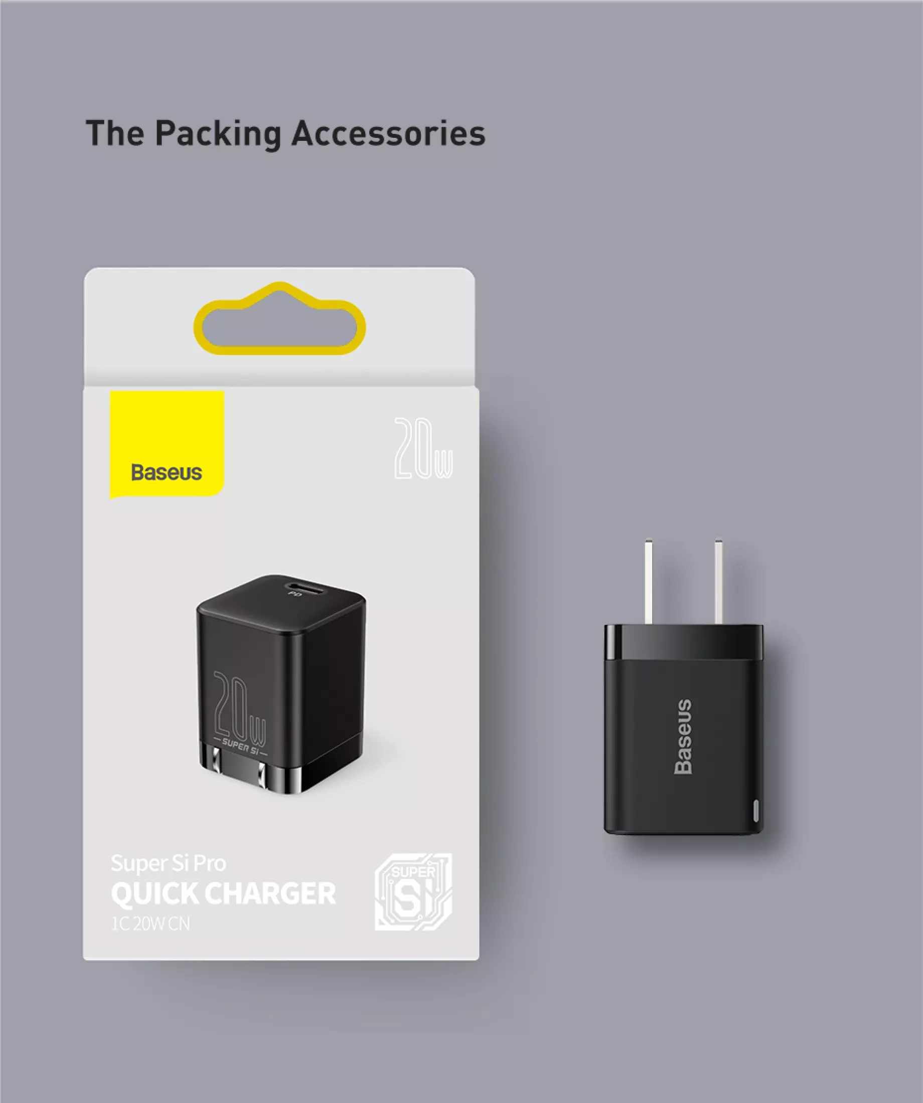 ✨Baseus Super Si Pro Bộ sạc USB C có thể gập lại 20W nhỏ gọn và cực bền cổng Type C Sạc nhanh cho iPhone 12 Pro Max Bộ sạc nhanh Samsung Xiaomi iPhone Huawei - Hàng Chính Hãng