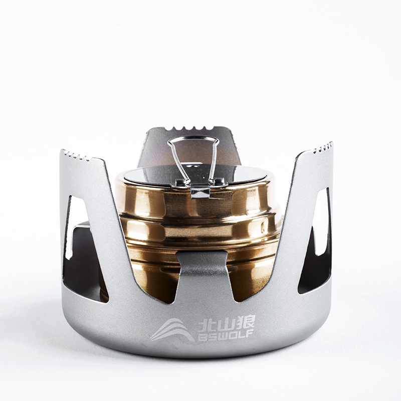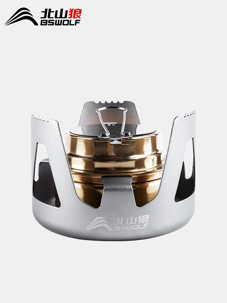 Bếp cồn dã ngoại SK063. Chất liệu hợp kim nhôm + đồng vàng. Nắp chữa cháy an toàn.