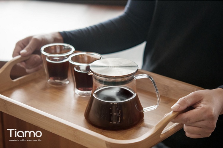 ✨Bình pha cà phê thủy tinh chịu nhiệt Tiamo 400ml nắp inox