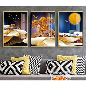✨Bộ 3 tranh bóng kiếng hiện đại trang trí phóng khách Nai Cây và Trăng ZTU_145070