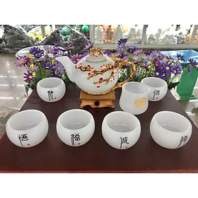 Bộ ấm trà bạch ngọc hoa mai