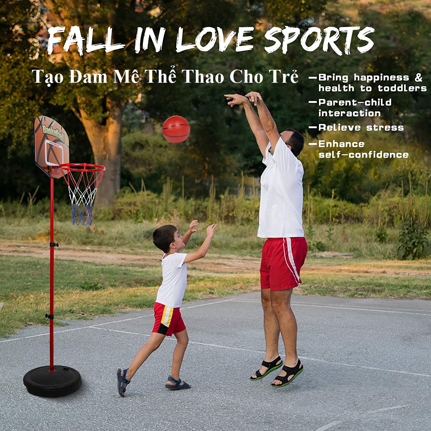 Đồ chơi bóng rổ cho trẻ em có Chân đế bộ bóng rổ được làm từ nhựa ABS chịu lực cực tốt, thân Bộ Bóng rổ được làm từ thép chống gỉ, có ren bắt vít – sản phẩm an toàn cho mọi lứa tuổi.