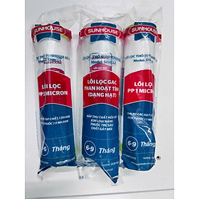 - Lõi lọc nước số1: Cấu tạo: từ sợi PP được nén chặt đến khi khe hở đạt kích thước chỉ còn 5µm (tương đương 0.005 mm). Chức năng: ngăn chặn bẩn, bùn đất, rỉ sét, các tạp chất thô và kim loại nặng có kích thước ≥ 5µm,toàn bộ chất bẩn có kích thước lớn hơn 5 µm sẽ được giữ lại ở lõi lọc này. Công suất: lọc 18.000 lít. Thời gian thay thế: Là lõi lọc đầu tiên nên sản phẩm có thời hạn sử dụng ngắn nhất. Thông thường, bạn nên thay thế lõi lọc mới sau 3-6 tháng sử dụng để đạt hiệu quả tốt nhất. Thực tế nếu nguồn nước quá bẩn bạn nên thay sớm hơn hoặc lắp thêm bộ lọc thô để chất lượng nguồn nước đầu vào tốt hơn.