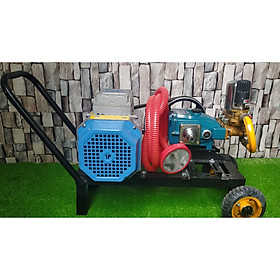 -Máy có kiểu dáng xe đẩy với 2 bánh xe lớn, tay cầm thuận tiện giúp di chuyển dễ dàng trong mọi địa hình.