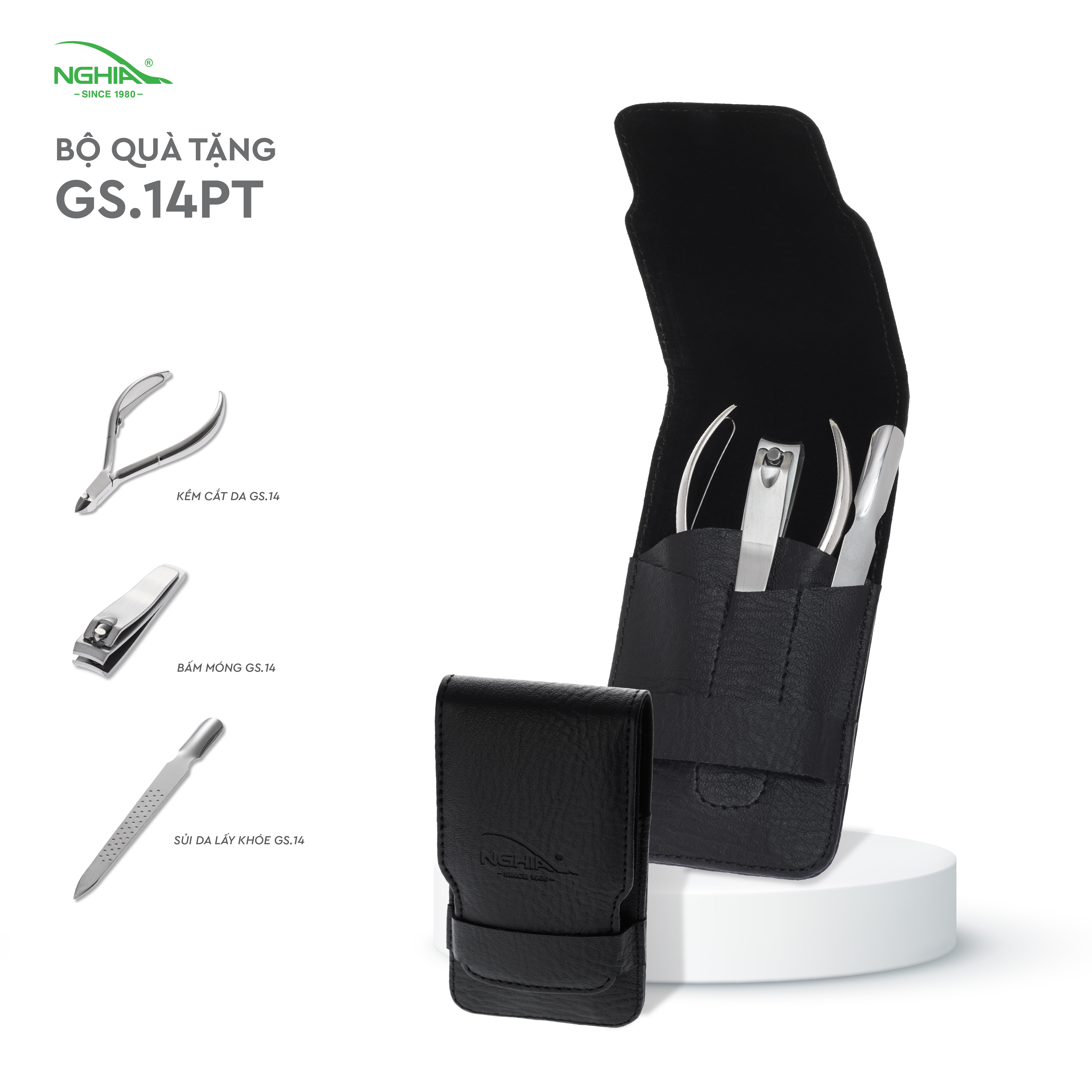 ✨Bộ Quà Tặng (Kềm Da-Bấm Móng-Sủi Da) Thép Không Gỉ Cao Cấp KỀM NGHĨA GS.14 PT