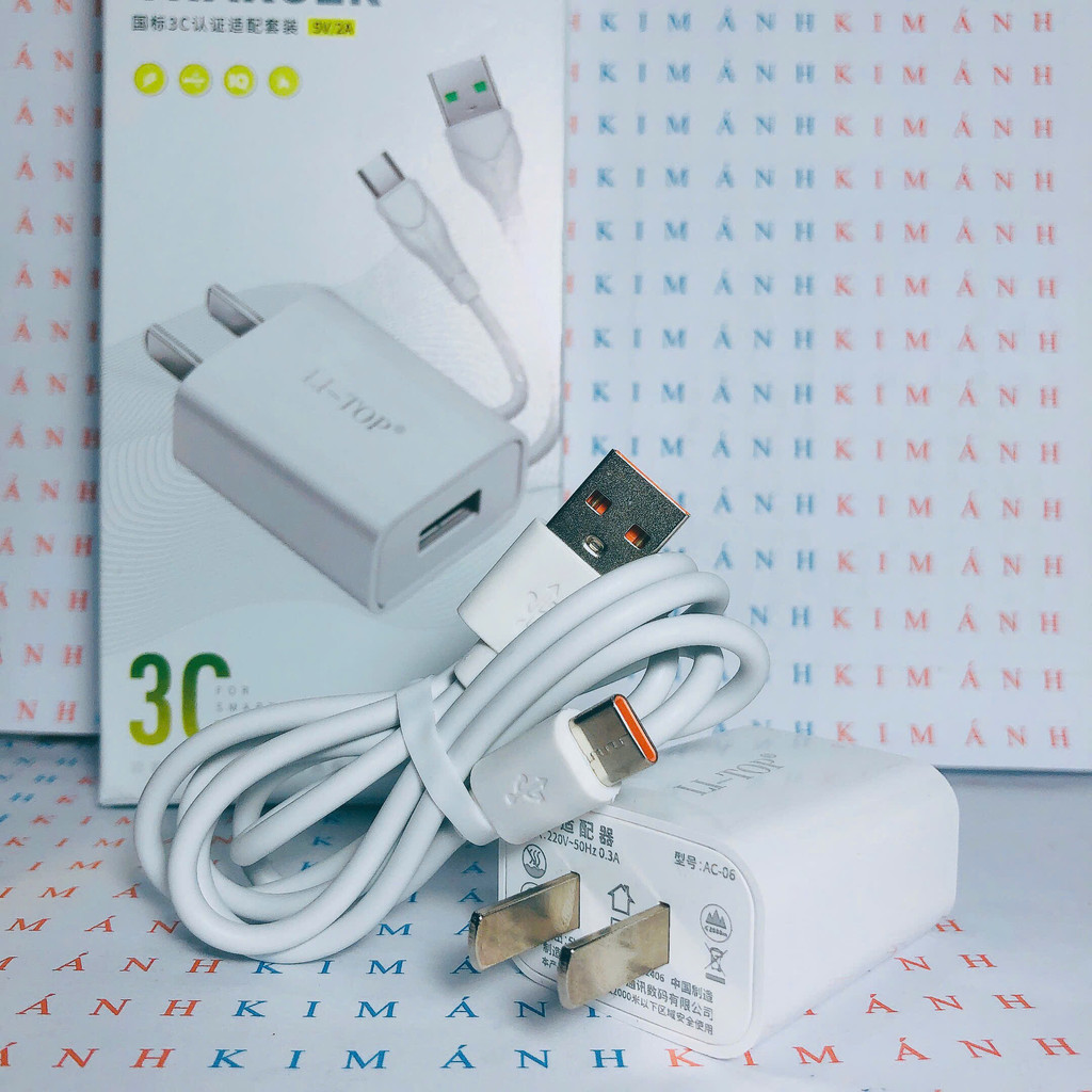 Bộ sạc LI-TOP Rio Tinto AT06 5V- 2A chân Type C, đạt chứng nhận 3C tiêu chuẩn quốc gia, bảo hành chính hãng 12 tháng Sản phẩm Li-Top cho Kim Ánh nhập trực tiếp về, trên thân và hộp có khắc dấu chứng nhận 3C tiêu chuẩn quốc gia, qua kiểm định nghiêm ngặt an toàn thiết bị điện, shop sẽ gửi kèm giấy chứng nhận theo đơn hàng đến cho khách Dòng điện chuẩn 5V-2A Đầu vào usb đầu ra Type C thích hợp các loại máy cùng chân sạc Type C Củ nặng, đầm, chắc tay, hộp đựng đẹp, ngoại quan rất đẹp, anh chị em cửa hàng nhập về bán khách tốt