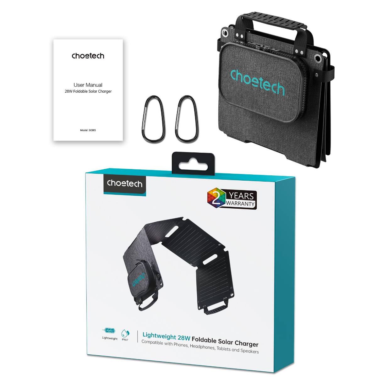 Giới thiệu Bộ sạc năng lượng mặt trời di động Choetech SC005-V5 công suất 28w có thể gấp gọn (Hàng chính hãng)