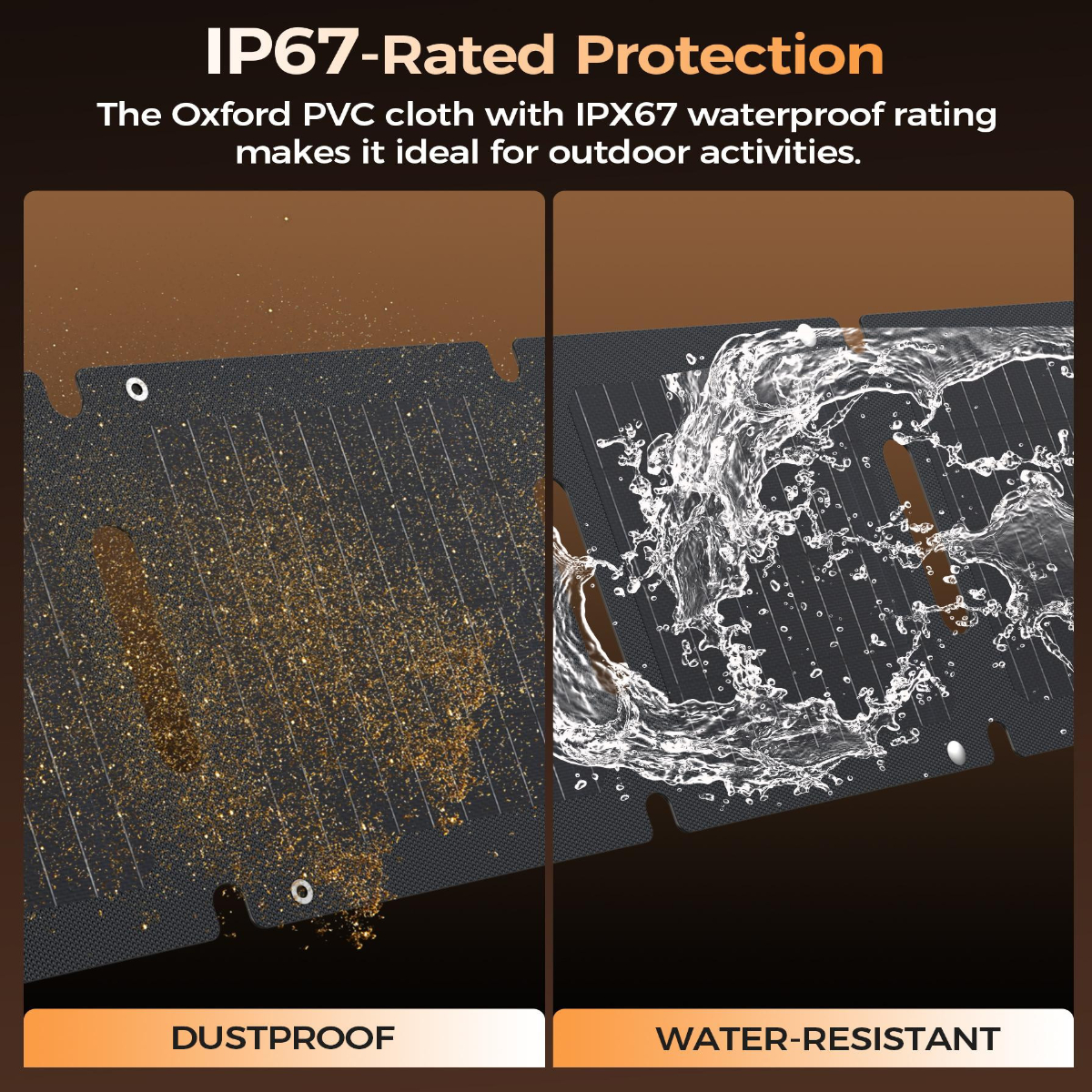 – Được trang bị 4 tấm pin năng lượng mặt trời chất lượng cao, thiết bị cho khả năng chuyển đổi năng lượng hiệu quả, cung cấp công suất sạc lên đến 28W, đủ để sạc điện thoại, máy tính bảng, tai nghe, pin dự phòng và các thiết bị USB khác.
