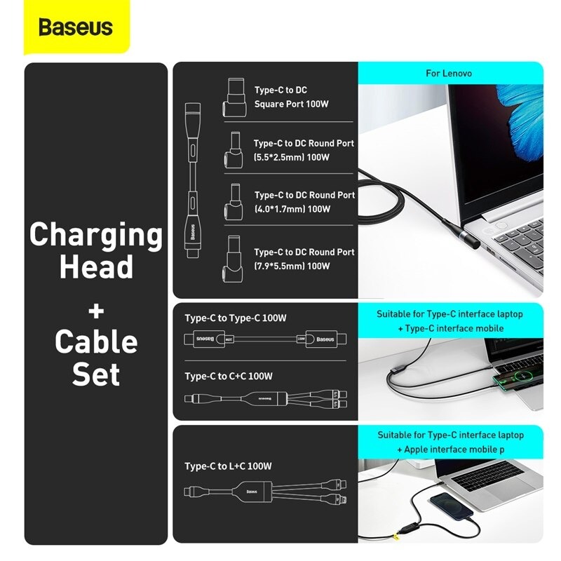 Cáp sạc nhanh đa năng 3 đầu Baseus Flash Series II 3in1 Fast Charging Cable (USB-A+ Type C/ Type C to Micro + L + Type C, 100W) Note: Cáp sạc nhanh 3 đầu thế
