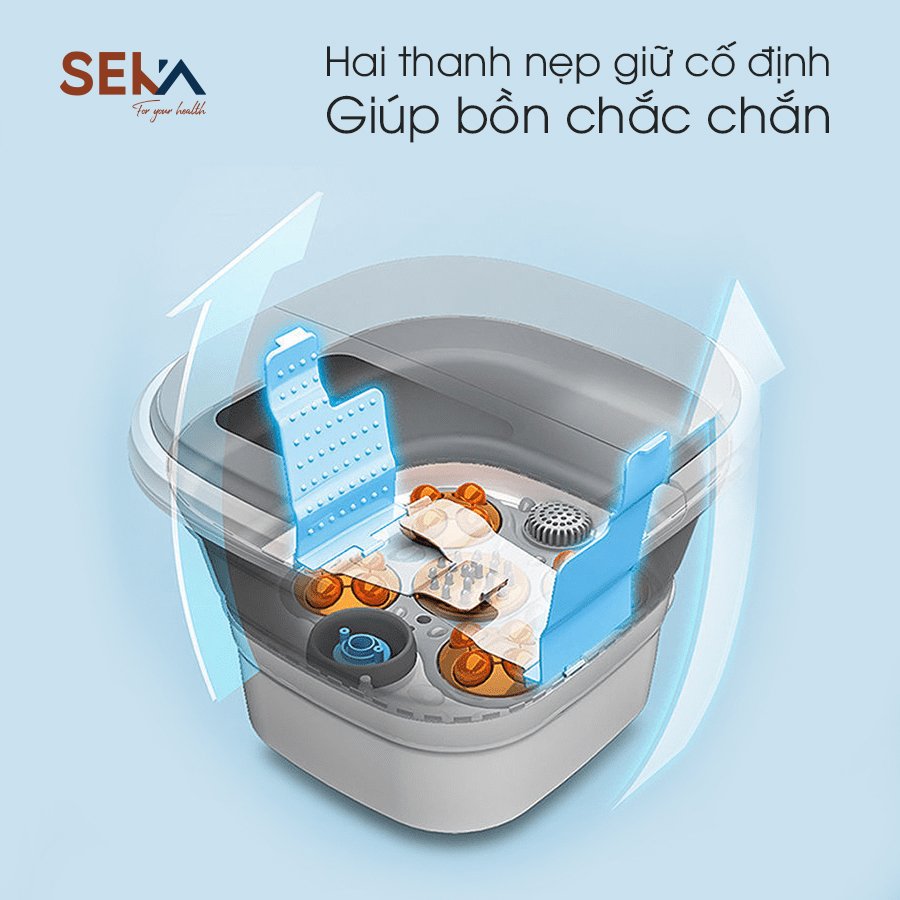 HƯỚNG DẪN SỬ DỤNG BỒN NGÂM CHÂN MASSAGE Mở thùng, lấy sản phẩm ra, ấn vào đáy thùng, lần lượt nhấc lên và mở ra từ hai bên thùng, đồng thời cố định các giá đỡ bên trái và bên phải, ở hai bên thành bồn