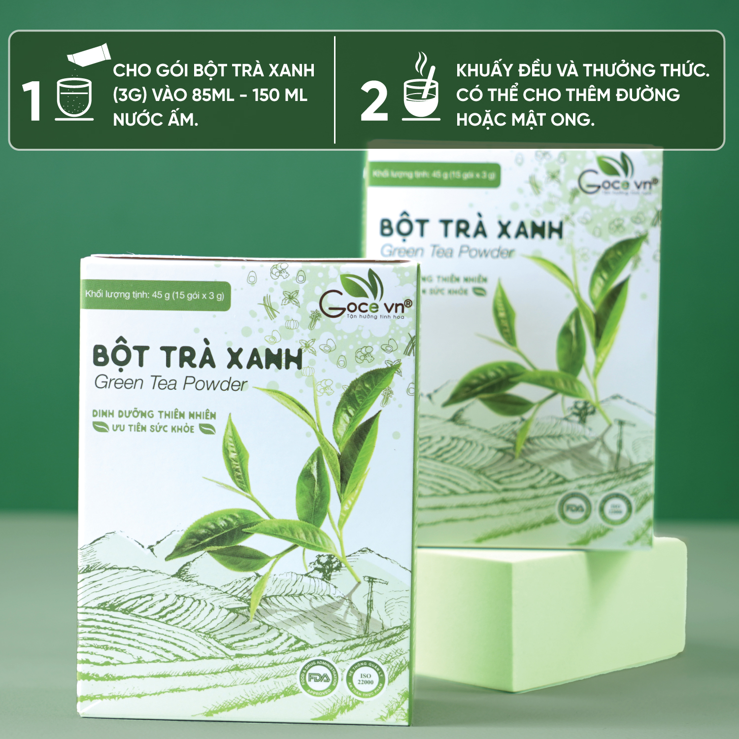 ✨Bột trà xanh nguyên chất Goce - 45g (15 gói x 3g) ST