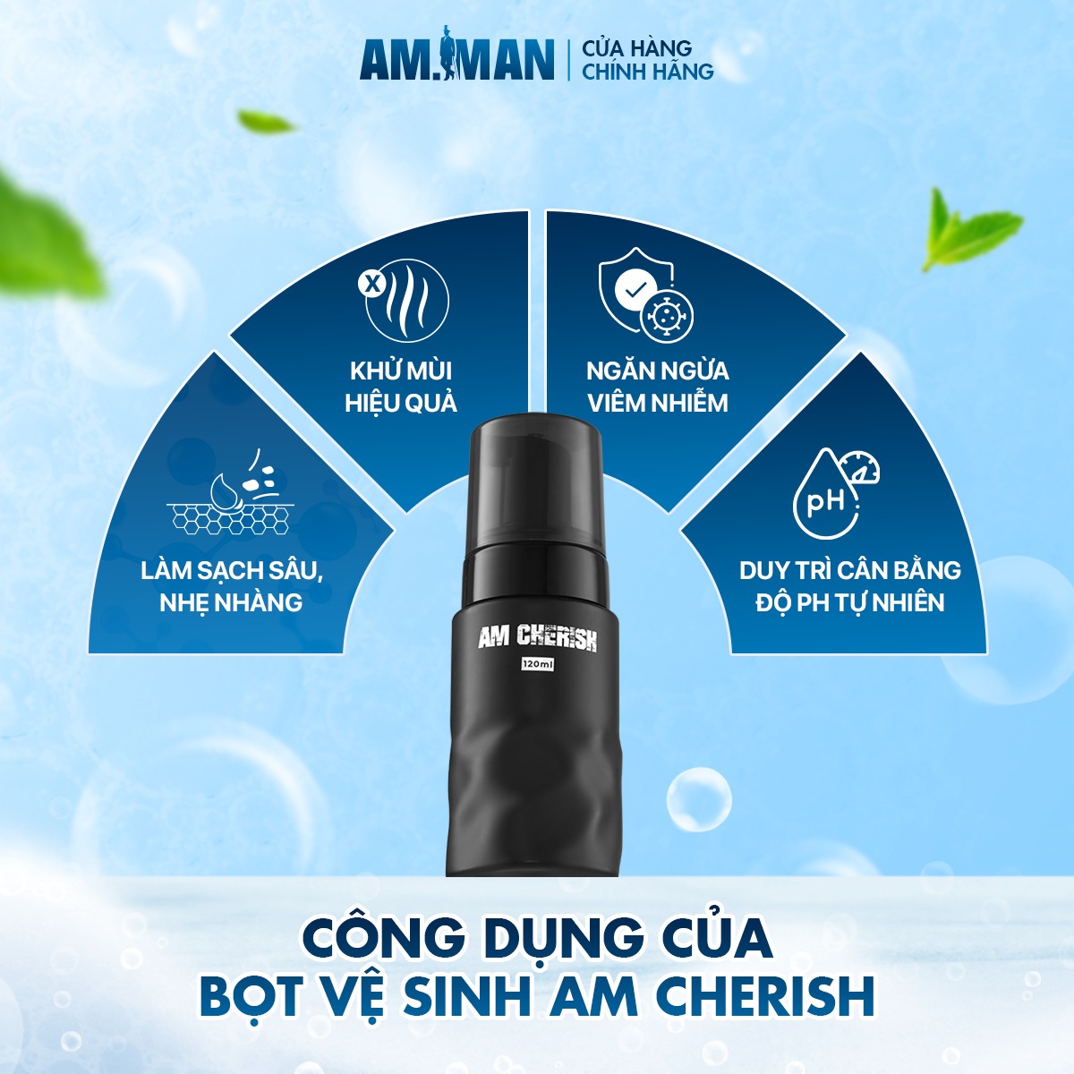 Bọt vệ sinh nam AM-MAN AM CHERISH 120ml hương nước hoa cao cấp THÔNG TIN THƯƠNG HIỆU: AM-MAN là thương hiệu chăm sóc cá nhân dành cho Nam Giới đã được cấp phép của Sở