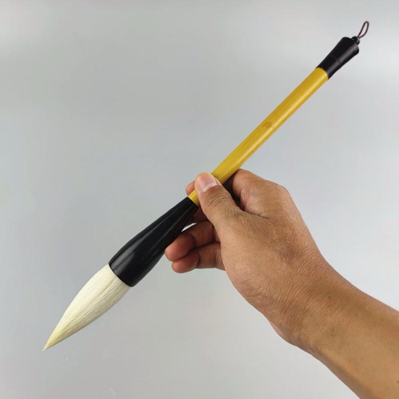 Bút viết thư pháp đại tự Dương hào thuần lông dê, kiêm hào lông phối hợp. Đầu bút mềm mượt, ngậm mực cực tốt. Khẩu kính lớn phù hợp chữ lớn, nét dày. Thư pháp