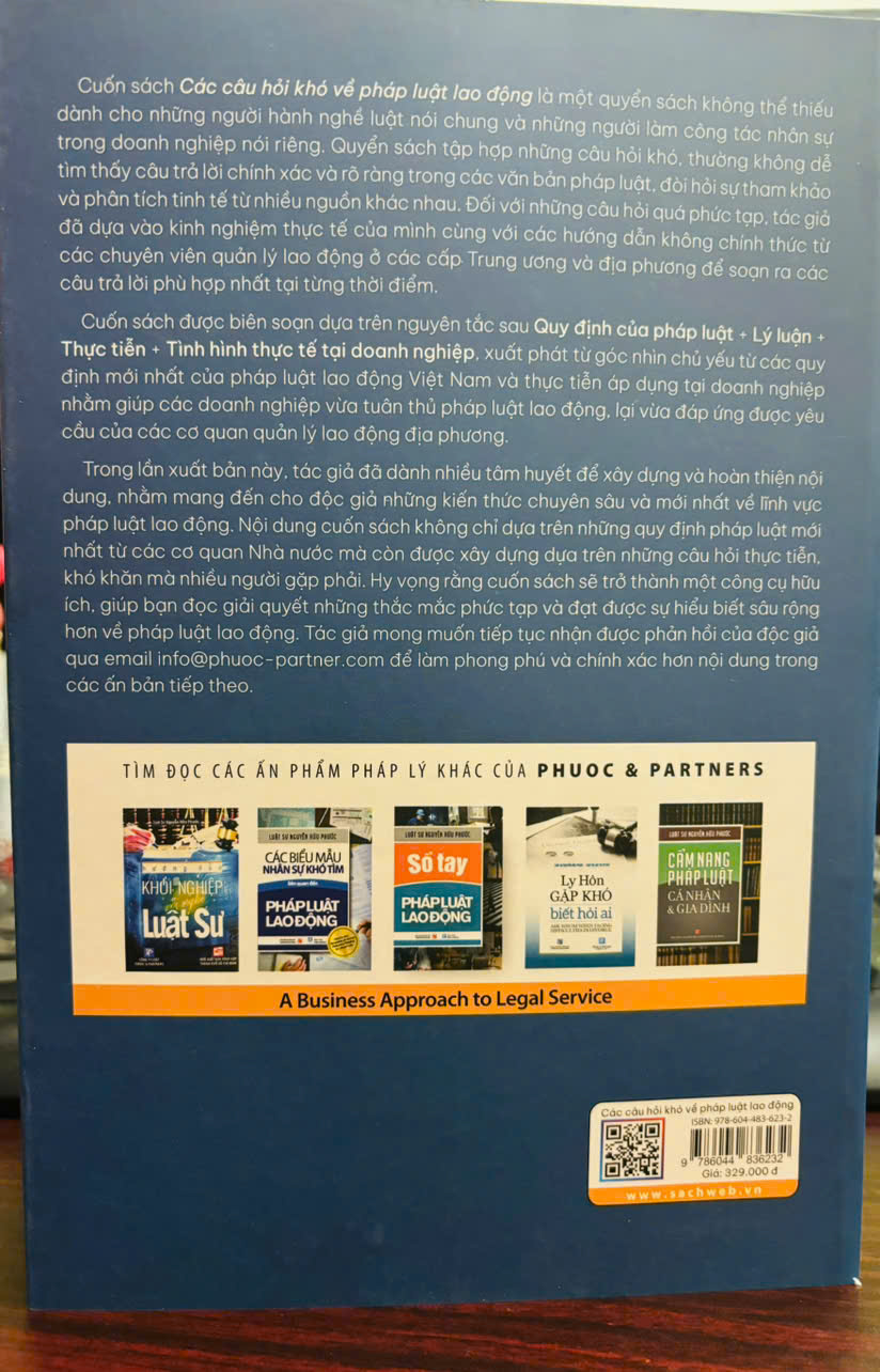Cuốn sách Các câu hỏi khó về pháp luật lao động là một quyển sách không thể thiếu dành cho những người hành nghề luật nói chung và những người làm công tác nhân sự trong doanh nghiệp nói riêng. Quyển sách tập hợp những câu hỏi khó, thường không dễ tìm thấy câu trả lời chính xác và rõ ràng trong các văn bản pháp luật, đòi hỏi sự tham khảo và phân tích tinh tế từ nhiều nguồn khác nhau. Đối với những câu hỏi quá phức tạp, tác giả đã dựa vào kinh nghiệm thực tế của mình cùng với các hướng dẫn không chính thức từ các chuyên viên quản lý lao động ở các cấp Trung ương và địa phương để soạn ra các câu trả lời phù hợp nhất tại từng thời điểm.