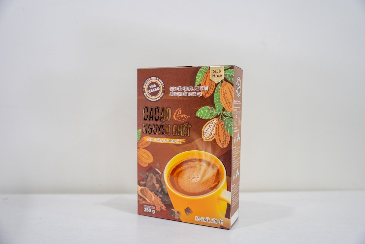 - Tên sản phẩm: Cacao nguyên chất. - Pha chế: Pha truyền thống, uống với đường hay sữa (nóng, đá) tùy thích. - Số công bố: 23/TN/2019. - Quản lý sản xuất theo tiêu chuẩn HACCP. -