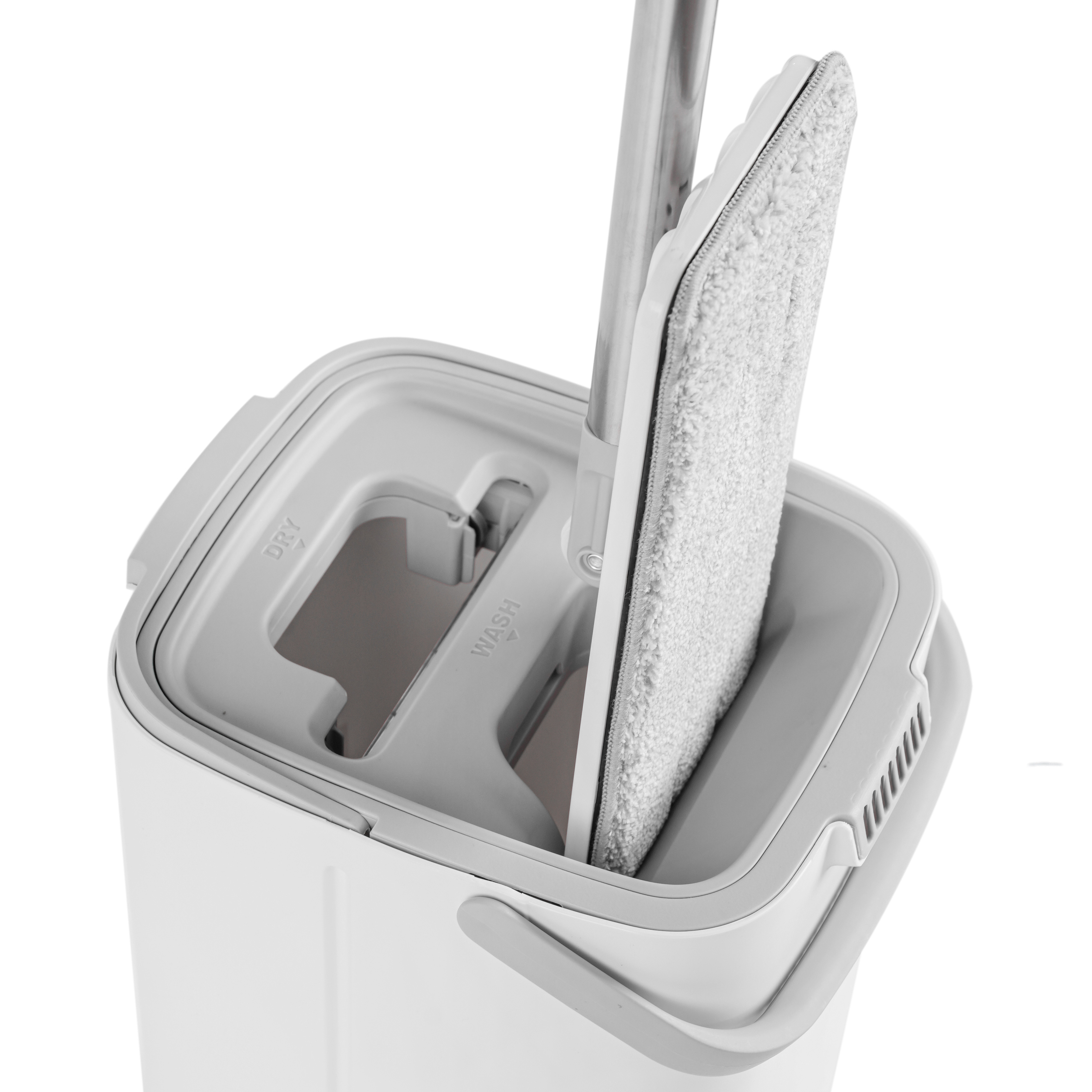 - Thương hiệu: MyJae - Màu sắc: Trắng, Xám - Chất liệu: Thép không gỉ, nhựa, polyester - Kích htước: Chiều dài cây lau: 123cm, Bông lau: 33,5 x 12,5cm, Thùng lau: 41 x 26 x 22