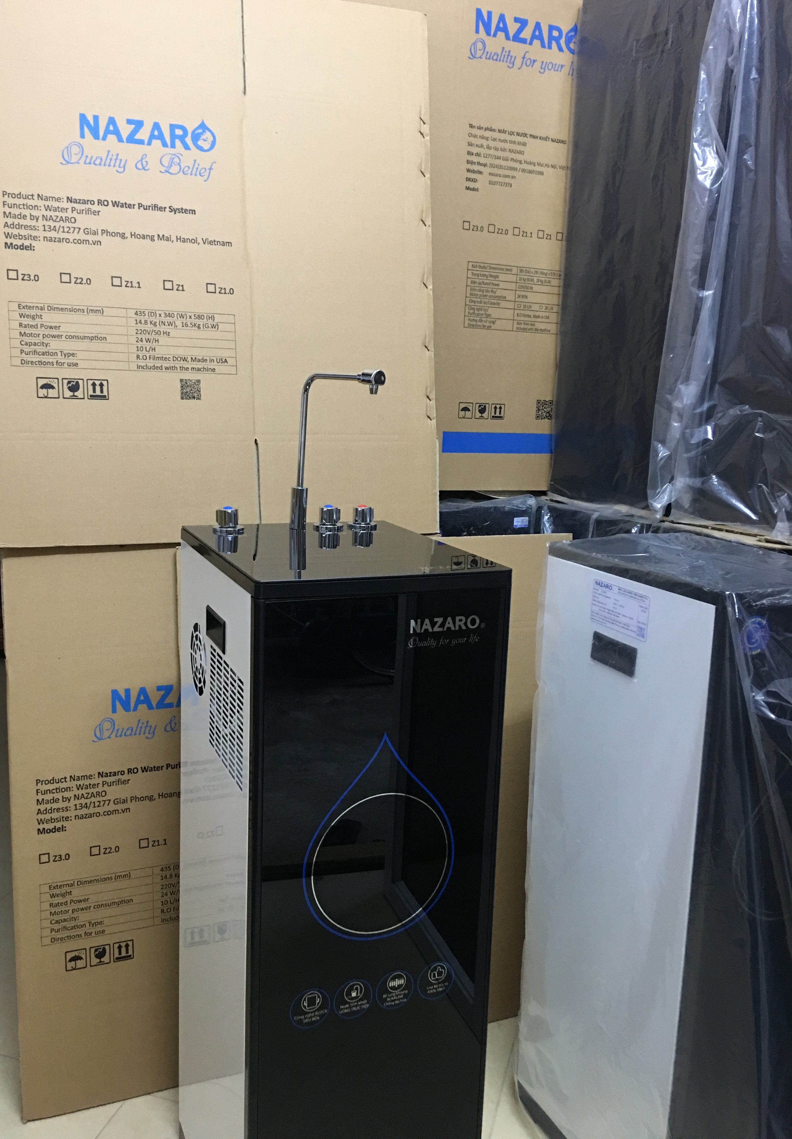 Hệ thống lọc RO: Nazaro với 06 cấp lọc 01 vòi với 3 chức năng ( nóng, lạnh, nguội) Dung tích bình áp chứa nước: 8 Lít Dung tích bình lạnh: 2 Lít/giờ Dung tích