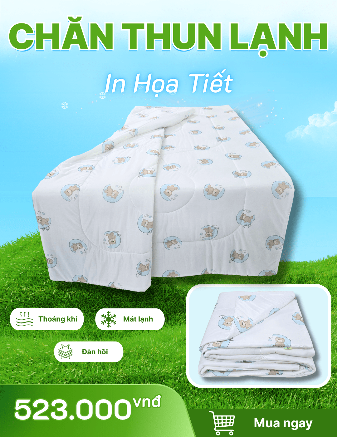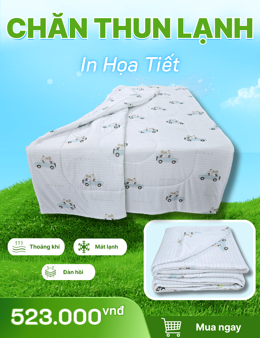 Tên sản phẩm: Chăn chần Thun Lạnh in Họa Tiết