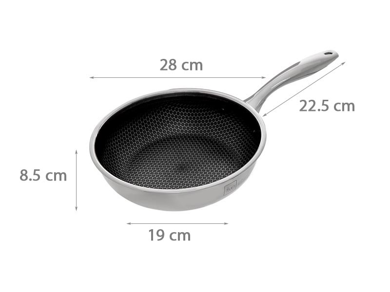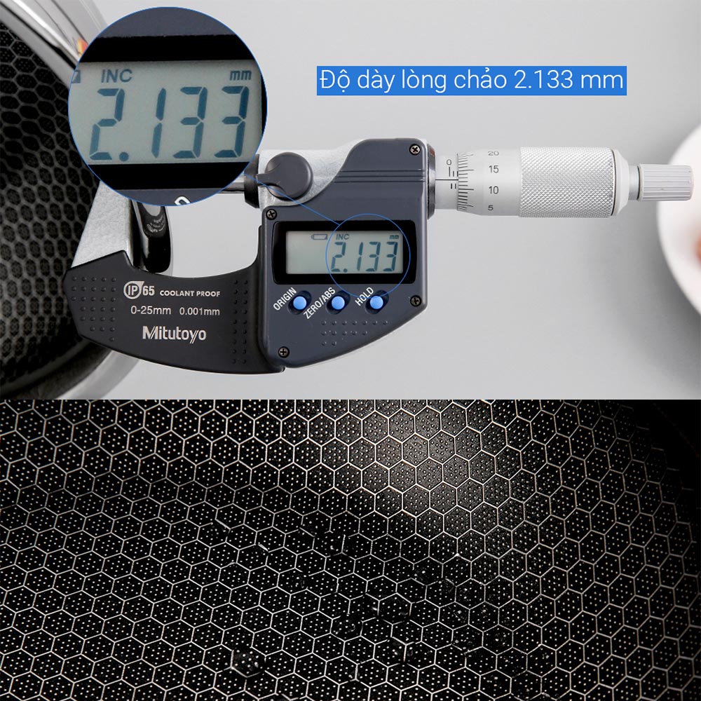 - Chảo inox sáng bóng phủ lớp chống dính siêu bền an toàn cho sức khỏe.