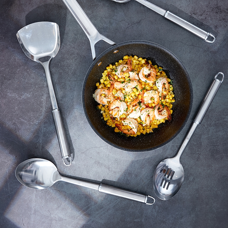 Cũng nhờ lớp chống dính ưu việt này, bạn có thể giảm đi một lượng đáng kể dầu mỡ khi chiên xào mà không cần e ngại nguy cơ thực phẩm dính sát vào lòng chảo.