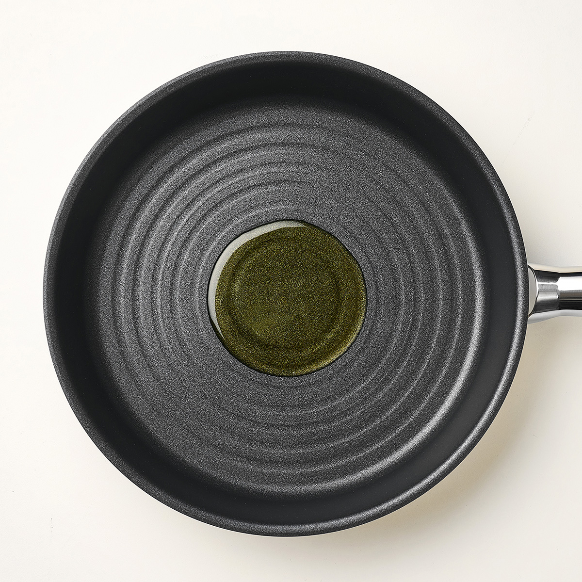 - Trang bị hệ thống "Khóa dầu": Giúp ngăn chặn dầu ăn chảy ngược về mép xung quanh chảo. Với hệ thống "khóa dầu" ở dòng sản phẩm Suit STS, dầu ăn sẽ tập trung