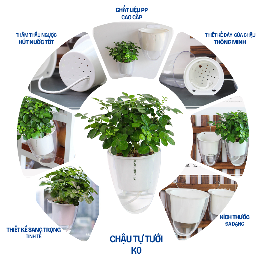 DOCNEEM XIN GIỚI THIỆU ĐẾN BẠN MÃ SẢN PHẨM - CHẬU TRỒNG CÂY TỰ TƯỚI THÔNG MINH MONROVIA H0 _ Chất liệu: PP cao cấp _ Cấu tạo: Chậu bao gồm hai lớp chậu *