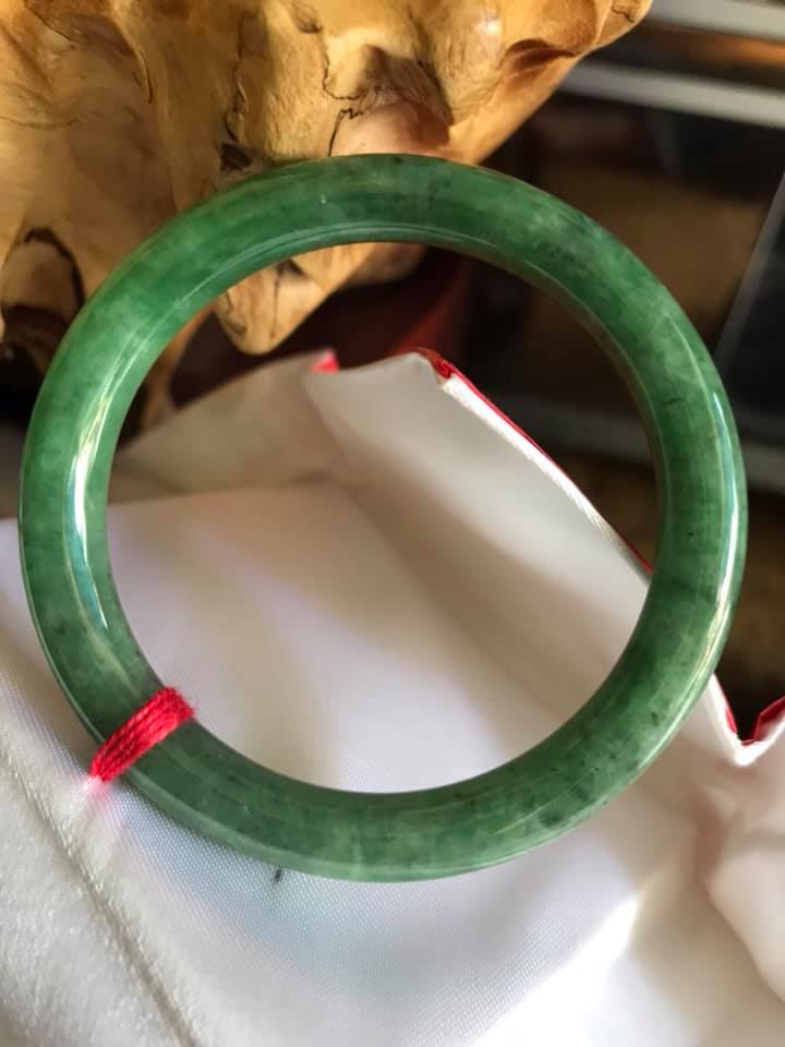 🌊💓Vòng cẩm thạch tự nhiên A LÝ 51mmx7,2mm Màu xanh lý nhẹ tô điểm 1 Vân Xanh Lý Đậm đẹp 50kg-57kg