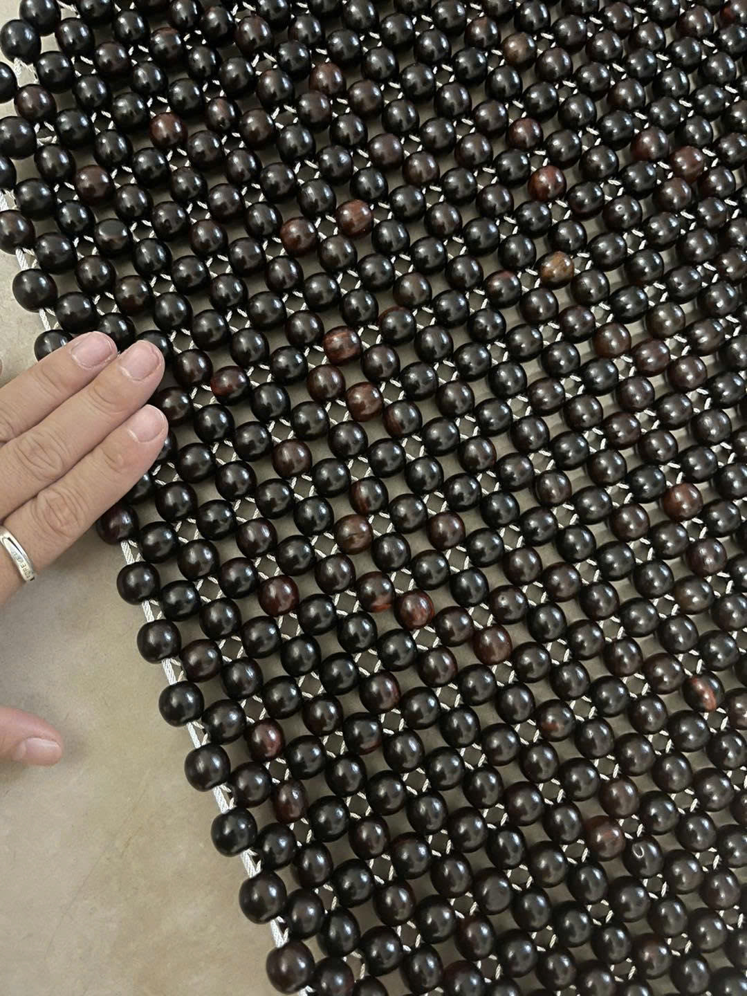 CHIẾU HẠT GỖ HƯƠNG ĐỎ CAO CẤP ( ) : - Chất liệu : 100% gỗ Hương tự nhiên - Kích thước chiếu : 1,2mx1,9m - Kích thước hạt : 1,2cm ( kích thước hạt