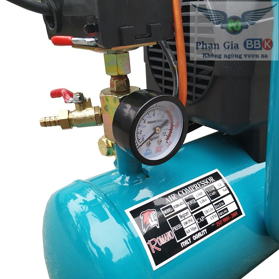 1. THÔNG SỐ KỸ THUẬT: MÁY NÉN KHÍ ROMANO 12L KHÔNG DẦU MODEL:RM750/12 -Công suất:840W -Mô tơ lõi đồng -Thời gian đầy bình:70 giây -Phụ kiện đi kèm:4 cao su giảm run+pô e -Lưu lượng