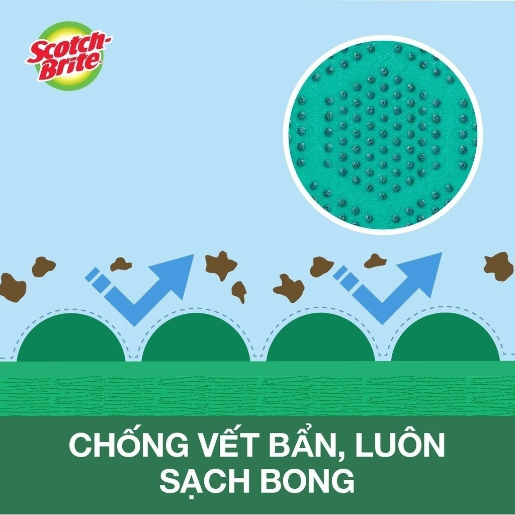 - Lớp phủ HẠT NỔI KHÔNG TRẦY XƯỚC trên bề mặt theo công nghệ hạt mài đặc biệt của 3M giúp loại bỏ các cặn bẩn bám dính và chống lại mùi khó chịu một các hiệu quả