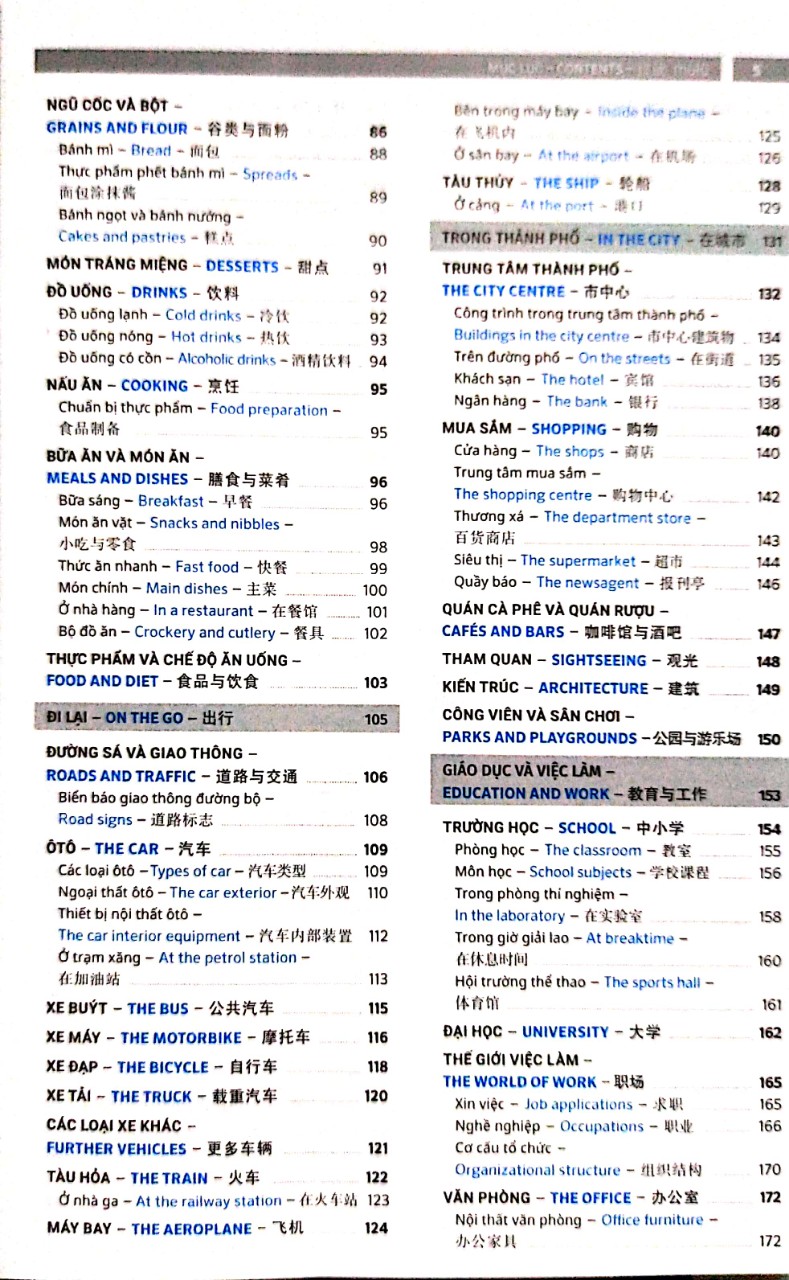 Từ điển được chia theo chủ đề, bao quát hầu hết các phương diện của cuộc sống hằng ngày, từ nhà hàng đến phòng tập thể dục, từ nhà ở đến nơi làm việc, từ thành thị đến cảnh quan thiên nhiên. Bạn cũng sẽ thấy nhiều từ và cụm từ bổ sung để sử dụng trong giao tiếp và để mở rộng vốn từ.