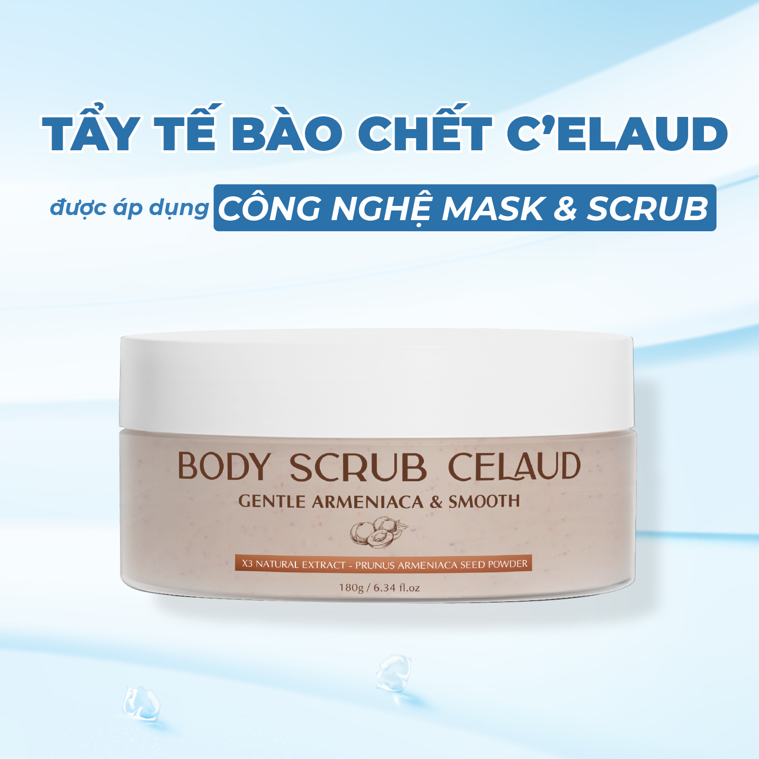 Tẩy tế bào chết, tái tạo và làm mịn da Body Scrub Celaud - Công nghệ Mask & Scurb kết hợp các dưỡng chất làm mềm lớp sừng, tế bào chết trên da. Sau
