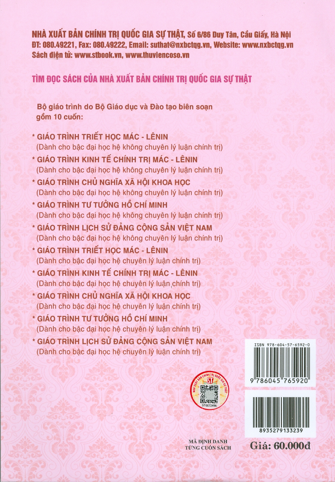 Bộ giáo trình lý luận chính trị gồm 5 cuốn dành cho bậc đại học hệ không chuyên lý luận chính trị. Bộ sách là tài liệu giảng dạy, học tập cho giảng viên, sinh