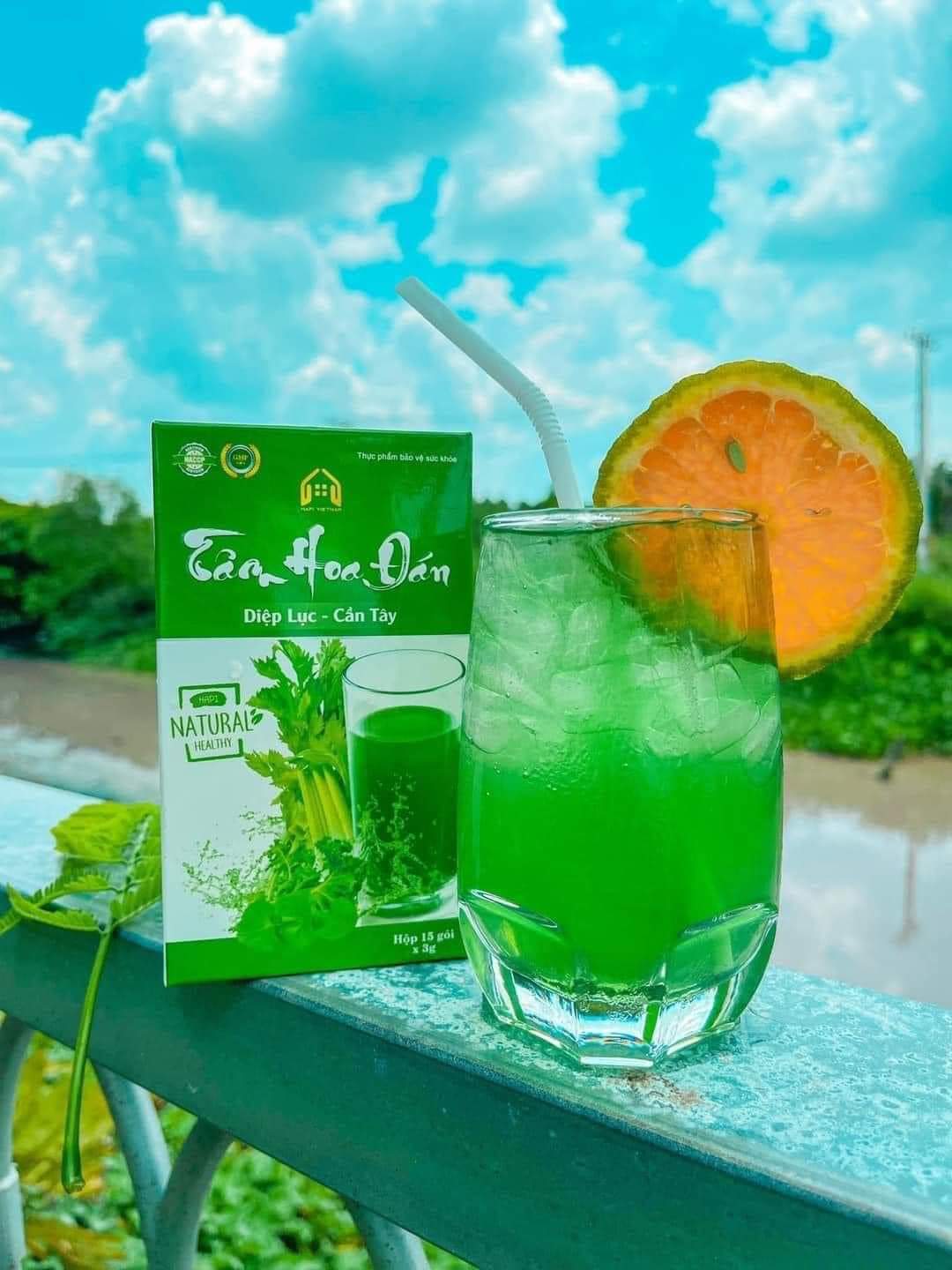 Mô tả sản phẩm - Trong gói 3g có chứa: - Bột Cần tây: - Collagen peptide: - Bột Diệp lục 10% (Chlorophyll): - L-Glutathion 10%: - Bột Cải xoăn: - Bột Rau má: -
