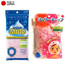 Combo khăn tắm tạo bọt Whip's (loại vừa bọt) Mũ tắm họa tiết hoa 25cm + Sản phẩm được nhập khẩu trực tiếp từ thị trường Nhật Bản chính hãng 100%. + Đảm bảo chất