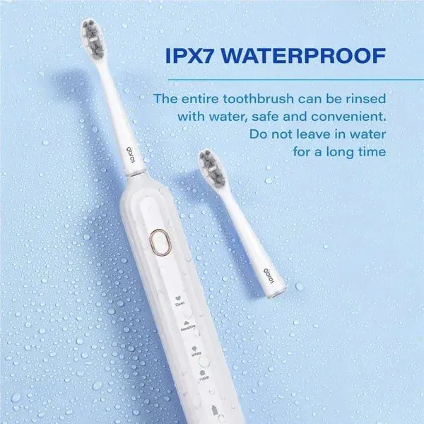 - ĐẶC TRƯNG: [Công nghệ Sonic] Được hỗ trợ bởi một động cơ âm thanh tự phát triển, có tốc độ hơn 38.000 RPM, rung nhanh hơn khoảng mười lần so với bàn chải đánh răng điện thông thường. [4 Chế độ làm sạch & Xếp hạng chống nước IPX7] : Sản phẩm này có 4 chế độ đánh răng khác nhau: chế độ làm sạch, nhạy cảm, làm trắng và đánh bóng, hoàn hảo cho bất kỳ hình thức chăm sóc răng miệng nào bạn cần. Sản phẩm được xếp hạng IPX7, cho phép rửa sạch bằng nước. [Một lần sạc đầy có thể kéo dài tới 6 tháng]: Bàn chải đánh răng điện GOROS Smooth đi kèm với USB type-C, cho phép nó kéo dài tới 6 tháng với một lần sạc trong 5 giờ. Nói lời tạm biệt với nhu cầu sạc khó chịu. [Sợi nano siêu mềm] : Được thiết kế dành riêng cho người dùng có răng và nướu nhạy cảm, tránh làm tổn thương men răng & kích ứng nướu, thích hợp cho cả răng nhạy cảm, người mới dùng bàn chải điện lần đầu. Loại: Sóng âm Dung tích bình chứa (đối với tăm nước) Chế độ làm sạch: 4 (Clean, Sensitive, White, Polish) Công nghệ chống nước: IPX7 Đầu tăm nước/ đầu bàn chải đi kèm: 2 đầu bàn chải siêu mềm dành riêng cho răng nhạy cảm Nguồn điện: Cắm sạc Tính năng: