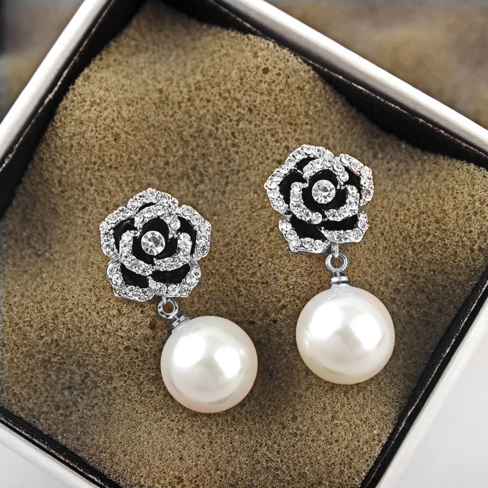 Set sản phẩm gồm 1 đôi bông tai và 1 dây chuyền hoa hồng đen