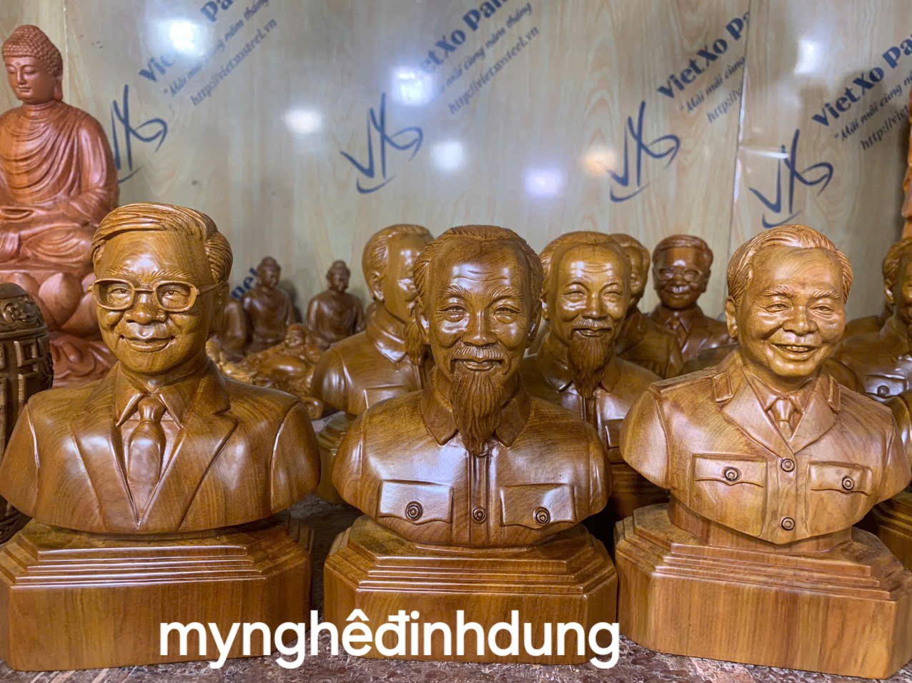 Mua tại TiktokTượng chân dung 3 vĩ nhân làm lên lịch sử đất Việt ,1 Chủ tịch hồ Chí Minh , 2 đại tướng võ nguyên giáp , 3 tổng Bí thư nguyễn phú trọng được làm bằng chất liệu gỗ bách xanh thơm nức tự nhiên 100% Kt cao 20x14cm _ Bộ tượng được chế tác làm và hoàn thiện từ bàn tay khối óc tài hoa và những người thợ giàu kinh nghiệm cũng như tay nghề cao trong làng nghề truyền thống.