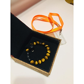 ✨Combo Vòng Đeo Tay Phong Thủy Đá Mắt Hổ Vàng Nâu Phối đá Núi Lửa, Hạt 10 Li, 19 hạt. Kèm hộp Gấm và dây xỏ dự phòng.