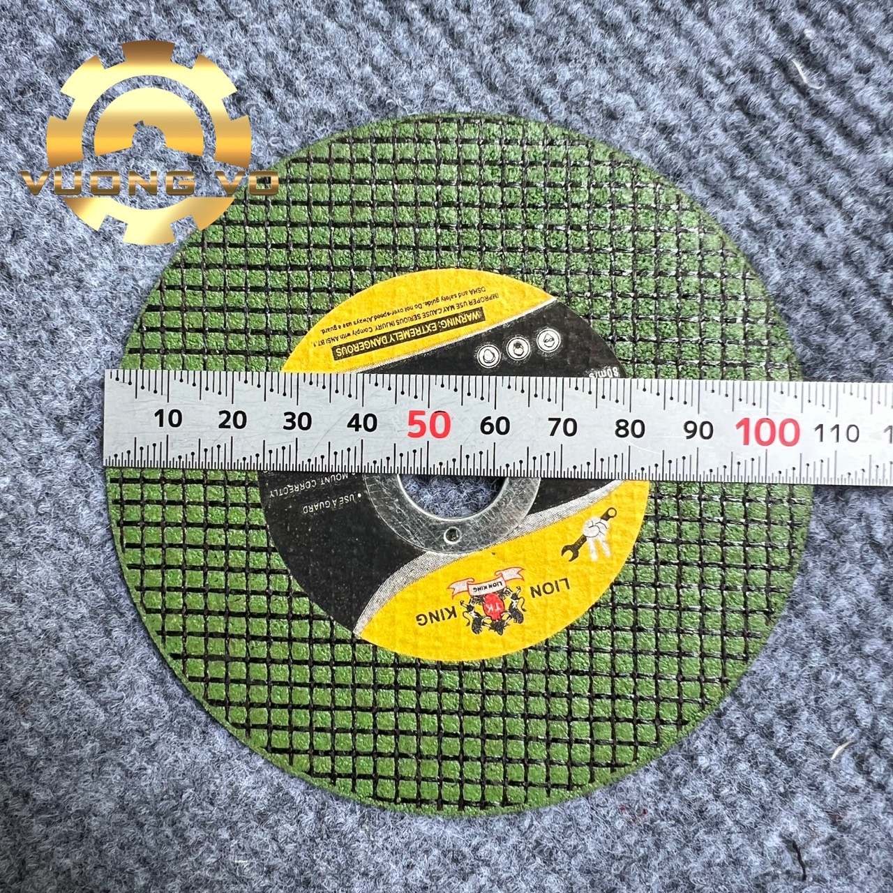Tên sản phẩm: Đá cắt 100mm Thương hiệu: Lionking Kích thước: -Đường kính:107mm -Độ dày: 1.2mm -Đường kính cốt: 16mm Quy cách đống gói: -Lốc 25 viên -Hộp 100 viên Đá cắt Lionking được đánh