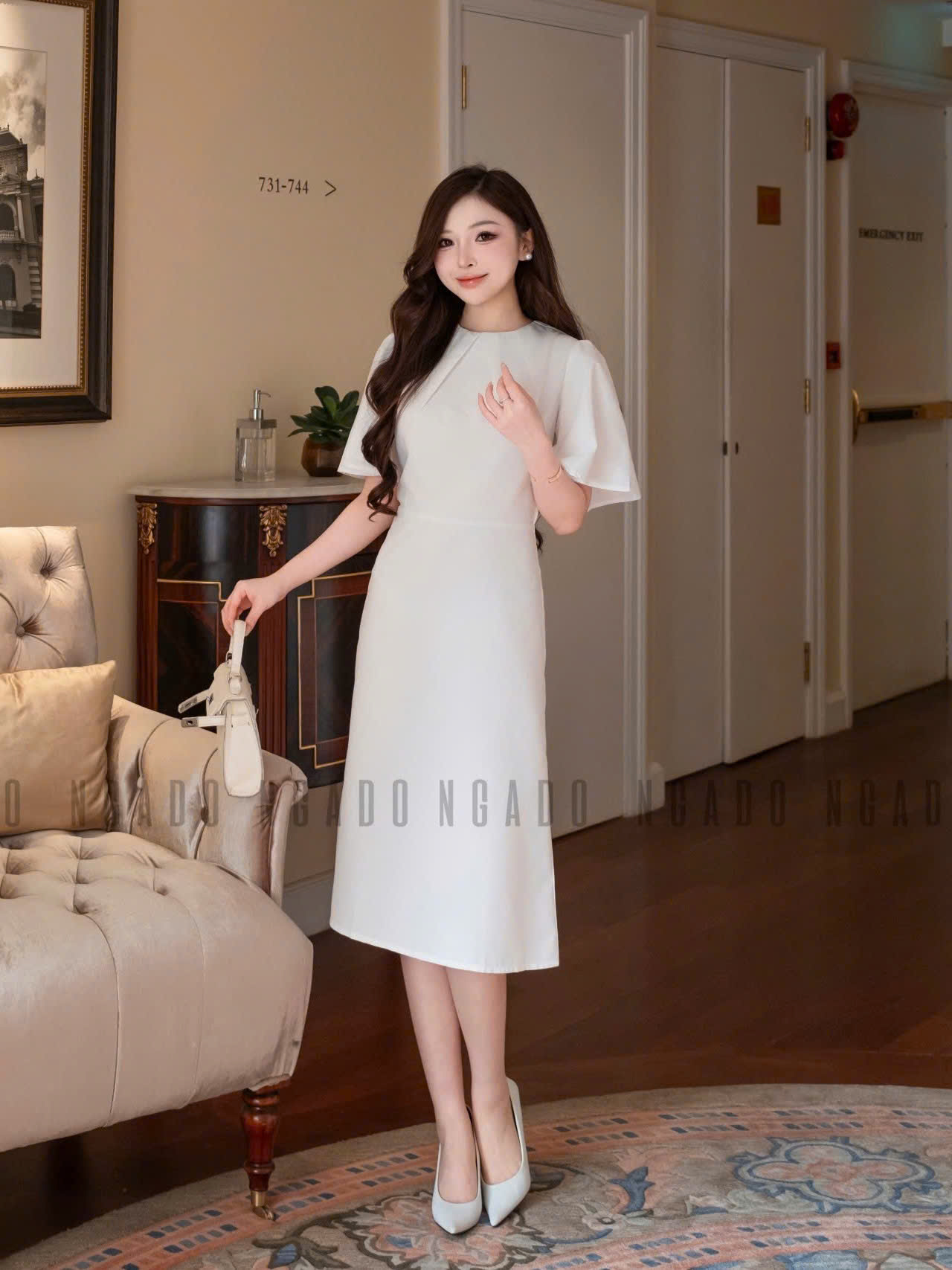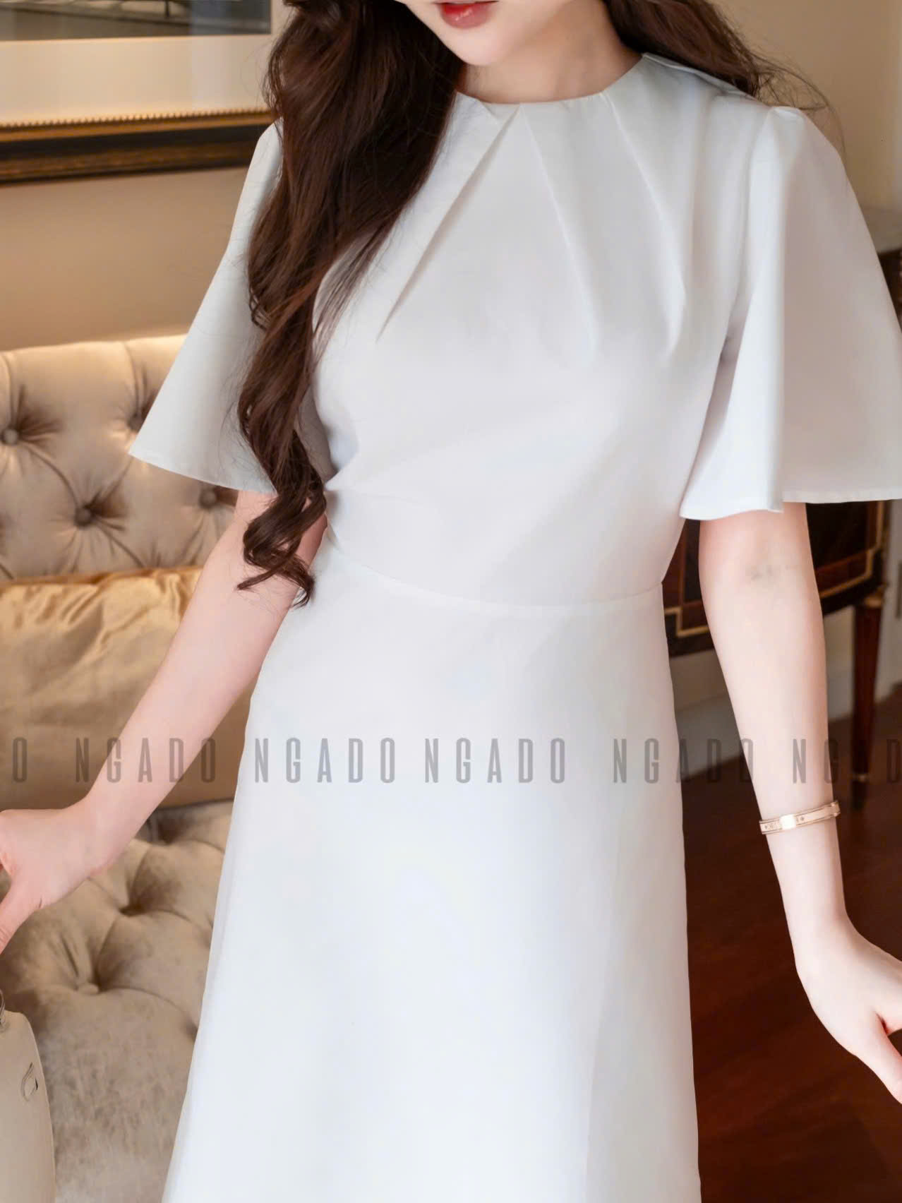 ღ THÔNG TIN SẢN PHẨM: Tên sản phẩm: Đầm trắng cổ xếp Màu sắc: trắng Chất liệu: Gấm trơn dày Chi tiết sản phẩm: không lót, không túi. Thông số