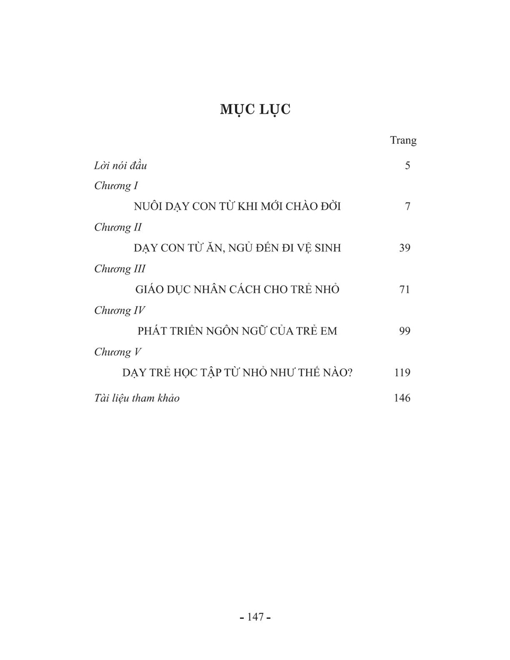 Mua tại TiktokSách chọn lọc và tập hợp những tri thức cơ bản về nuôi dạy con của nhiều chuyên gia tâm lý học, giáo dục học phương Đông, phương Tây, dành cho những bậc cha mẹ, nhất là những ông bố, bà mẹ trẻ: nuôi dạy con từ khi mới chào đời, dạy con từ ăn, ngủ đến đi vệ sinh, giáo dục nhân cách cho trẻ nhỏ, phát triển ngôn ngữ của trẻ em, cách dạy trẻ học tập từ nhỏ…