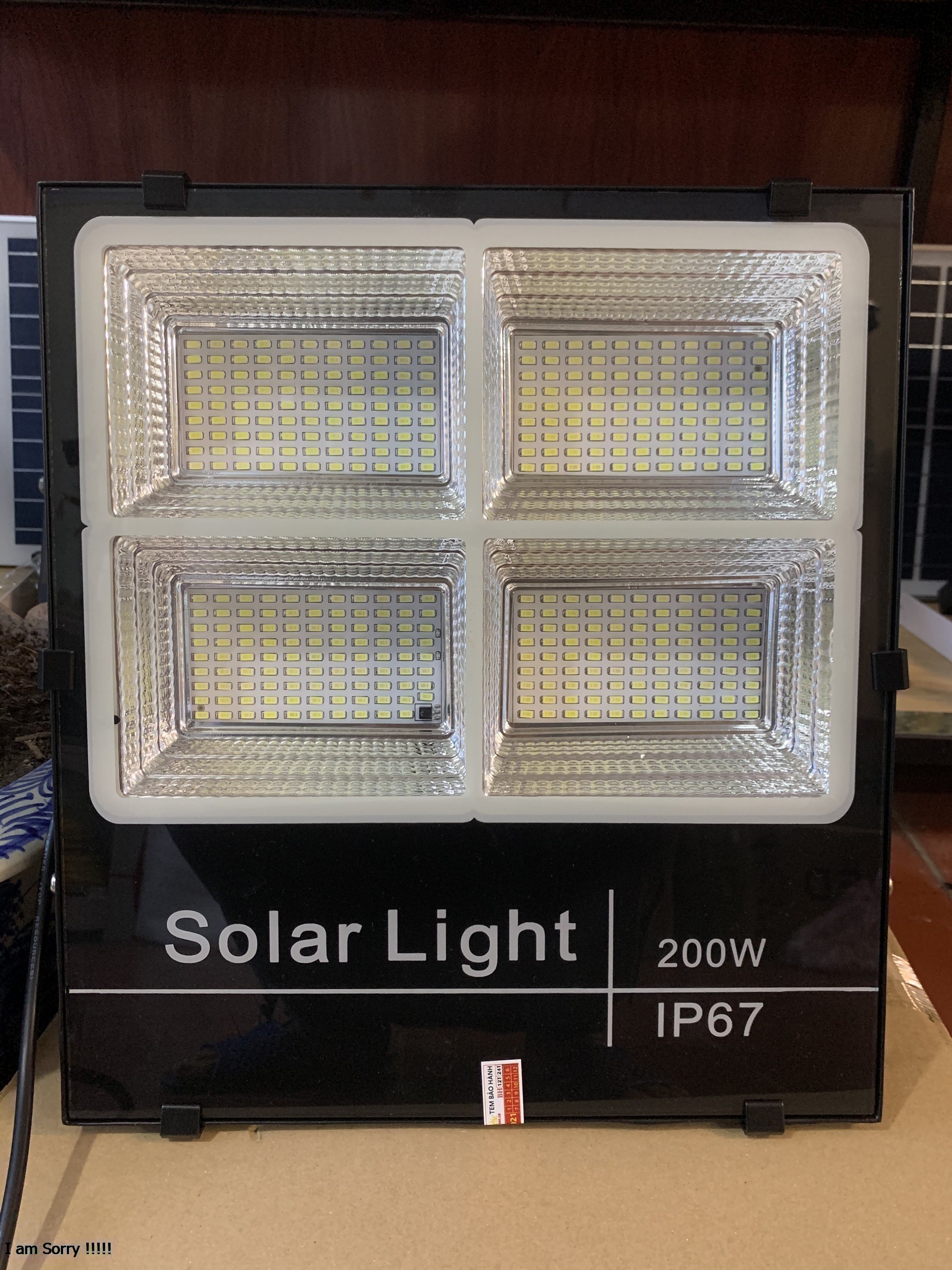 Đèn Năng Lượng Mặt Trời 200w đúng hình đúng kích thước chuẩn. Sai lệch về thông số hay kích thước quý khách hàng đề nghị trả hàng. Mong rằng công ty chúng tôi mang đến cho