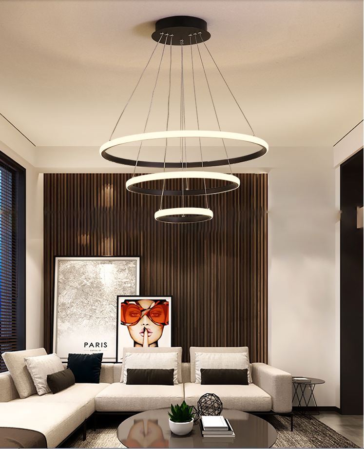 Đèn thả 3 vòng với phong cách thiết kế đơn giản nhưng sẽ giúp nổi bật không gian sống của gia đình bạn. Đèn thả 3 vòng là mẫu đèn thả được ưu chuộng nhất hiện nay, bởi giá thành hợp lý với khả năng tùy biến nhiều kiểu thả khác nhau, sẽ phù hợp với mọi không gian hiện đại. Đèn có điều khiển điều chỉnh chế độ ánh sáng từ xa vô cùng tiện dụng Thiết kế sang trọng, hiện đại, thích hợp với nhiều không gian và phong cách nội thất. Với điều khiển xa thông minh đèn có thể để chế độ ngủ đêm phục vụ cho nhu cầu xem phim, nghe ca nhạc Chức năng thay đổi 03 ánh sáng Trắng 6000K, Vàng 3000K và Trung tính 4500K Chức năng DIMMABLE: Tăng giảm ánh sáng của từng ánh sáng Có cấu tạo chip led công nghệ cao giúp đèn phát huy được ánh sáng tối đa, ánh sáng thu được chân thực như ánh sáng ban ngày. Tiết kiệm 80% điện năng.   Đèn thả với thiết kế vô cùng bắt mắt, bạn có thể thay đổi kiểu dáng bằng cách điều chỉnh độ dài các dây thả. Đèn LED 95w độ sáng rất tốt, đảm bảo khả năng chiếu sáng cao. Chiếc đèn này rất phù hợp cho những phòng khách, phòng ăn, quán ăn hiện đại, sang trọng.