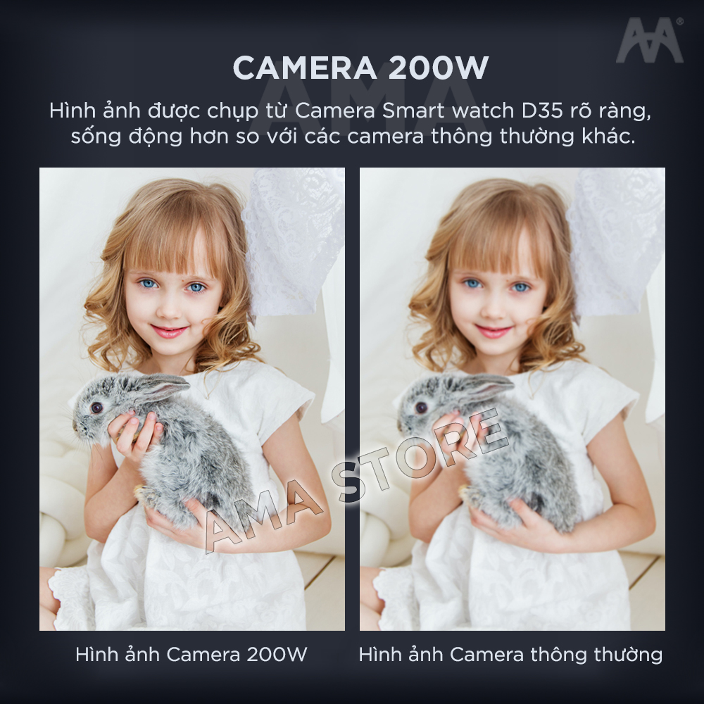 - Đồng hồ AMA Watch D35 có mặt tại Việt Nam cuối năm 2022 với rất nhiều chức năng tiện tích thiết yếu cho Lứa tuổi học sinh. Ngoài các tính năng chính như khả năng chống nước, thực hiện cuộc gọi Video HD, Định vị chính xác và Ổn định với sai số định vị chỉ 5 - 10m. D35 còn được trang bị 2 Camera chất lượng cao (Camera trước 30W, Camera sau 200W) giúp trẻ thoải mái thực hiện đam mê nhiếp ảnh.