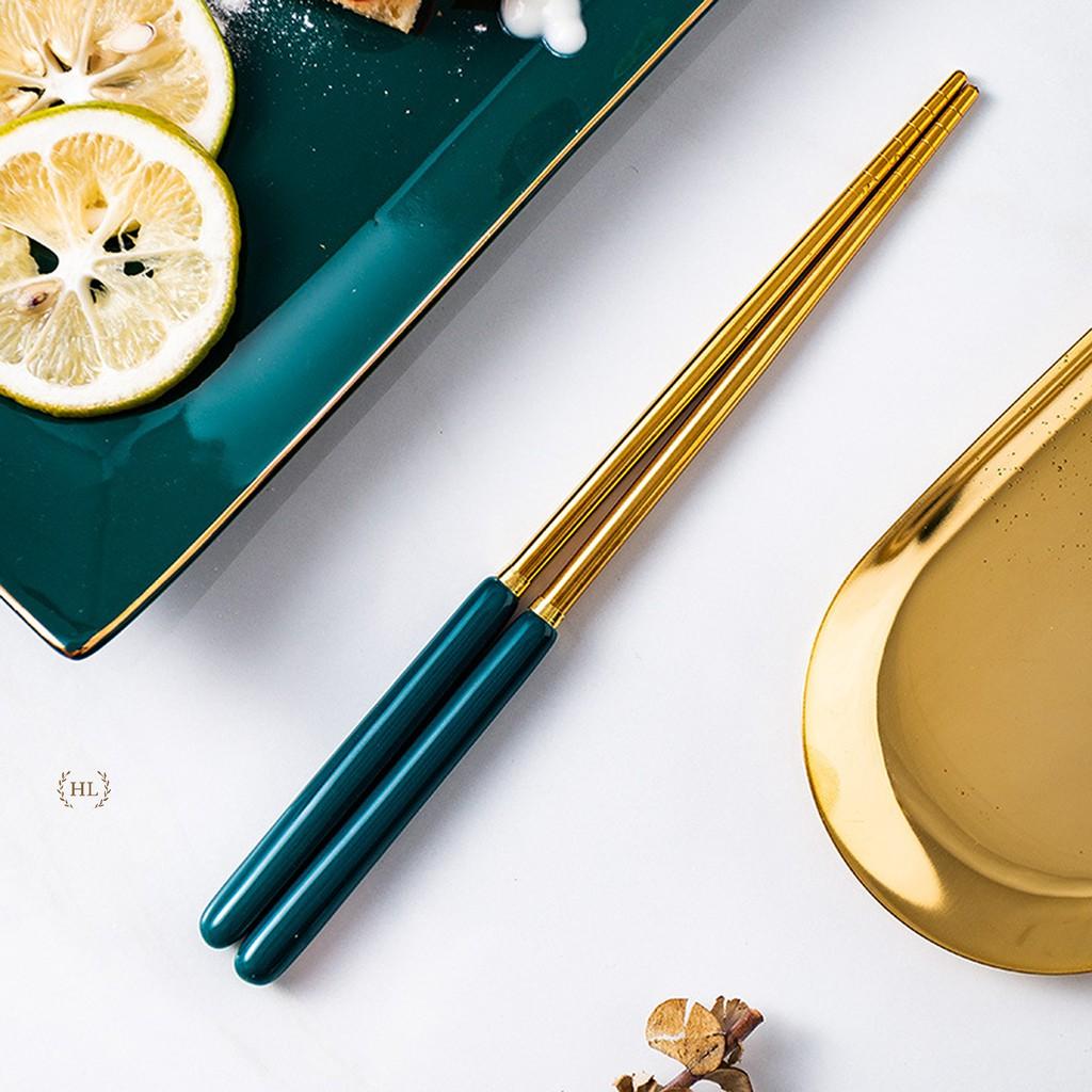 Được làm bằng chất liệu chống mốc chống mùi Đũa ko trơn thích hợp cho vui gắp mọi loại thước ăn Màu đen huyền bí đc bọc thêm một lớp mạ vàng trên đầu đũa