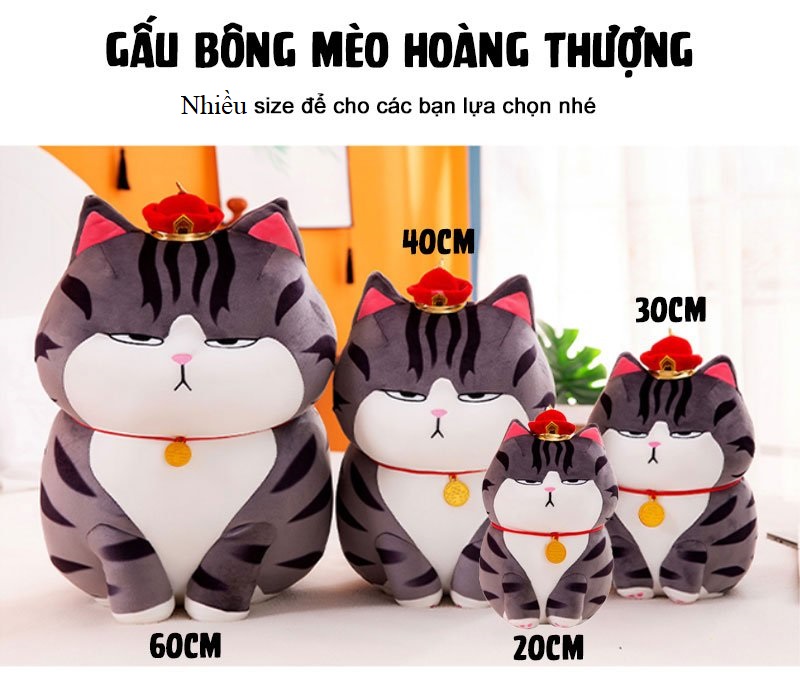Gấu Bông Mèo Hoàng Thượng Cao Cấp Thú nhồi bông mèo hoàng thượng là dòng sản phẩm cao cấp, lấy cảm hứng từ thú cưng yêu thích là Mèo dễ thương. Sản phẩm cao cấp