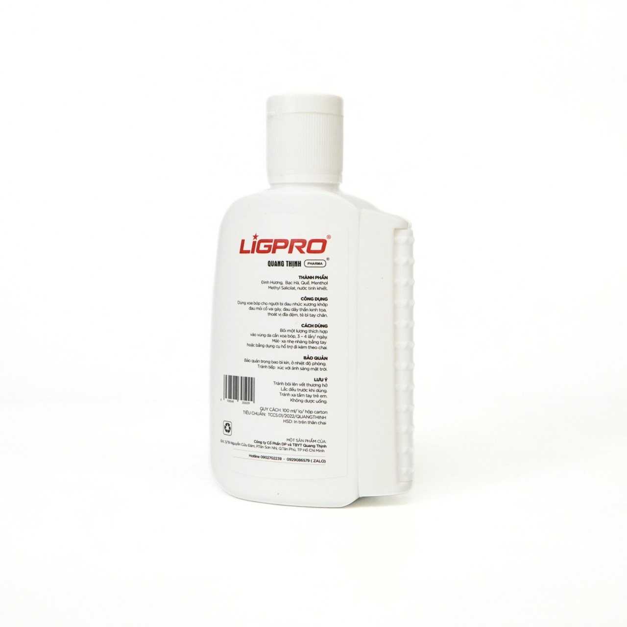 Mua tại TiktokGel nóng xoa bóp Ligpro, chai 100ml ( tặng kèm theo con lăn massa) Thành phần: Đinh hương, bạc hà, quế, menthol, Methyl salycilat, nước tinh khiết Công dụng: