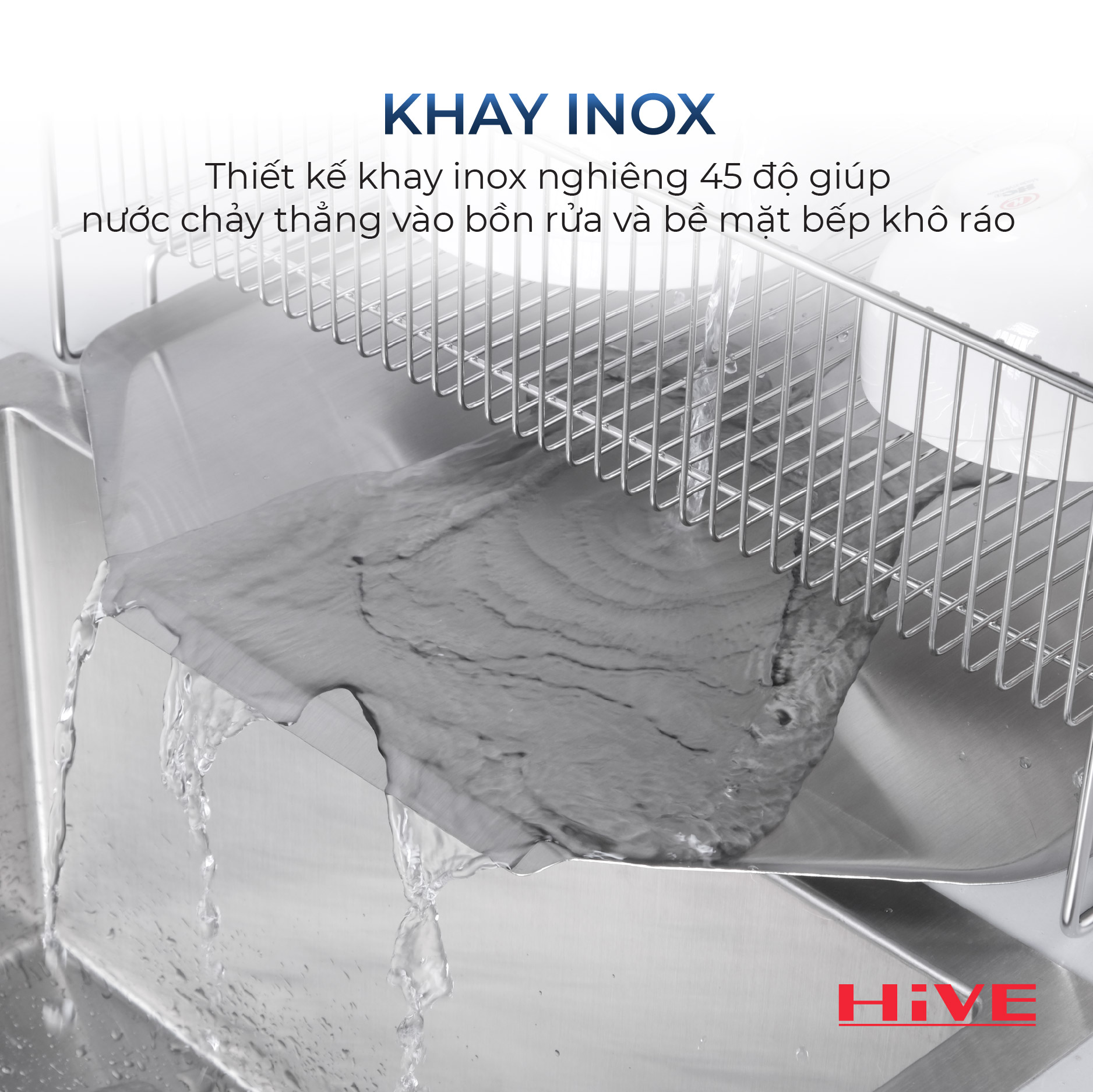 THÔNG SỐ KỸ THUẬT Giá úp chén bát HiVE SB inox Hàn Quốc Cao Cấp D x R x C : 1 tầng: 41 x 31 x 37cm 2 tầng: 41 x 30 x 36cm